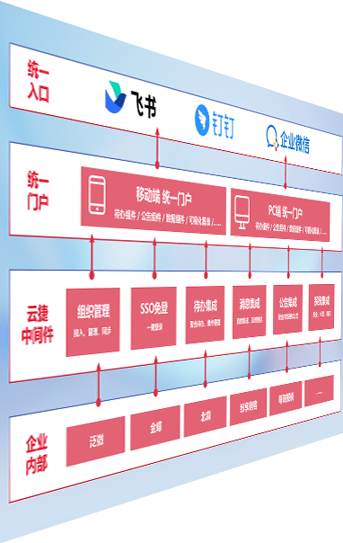 对协作平台提供支持服务,,,支持企业应用与协作平台对接,,,,包含组织同步、、消息集成、、待办集成等。。。。支持目前主流的协作平台:钉钉、、、企微和飞书。。。。